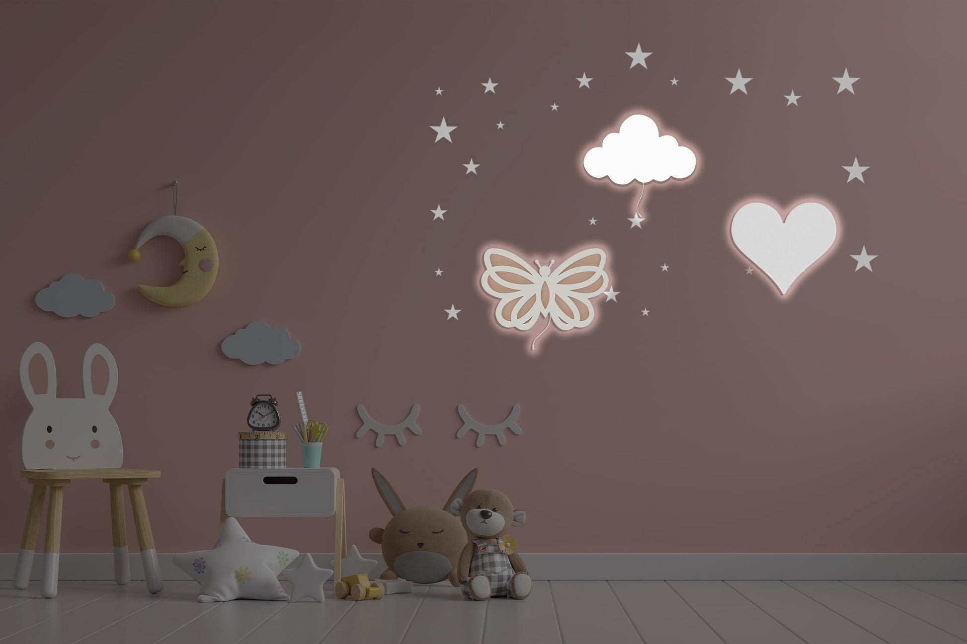 Zusammensetzung 3 Kinder-Wandnachtlichter Schmetterlingsgarten