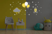 Contenuto della confezione : Babynotte: Nuage, 4 Ballons, Fusée. Adesivi: Confezione da 55 stelle.