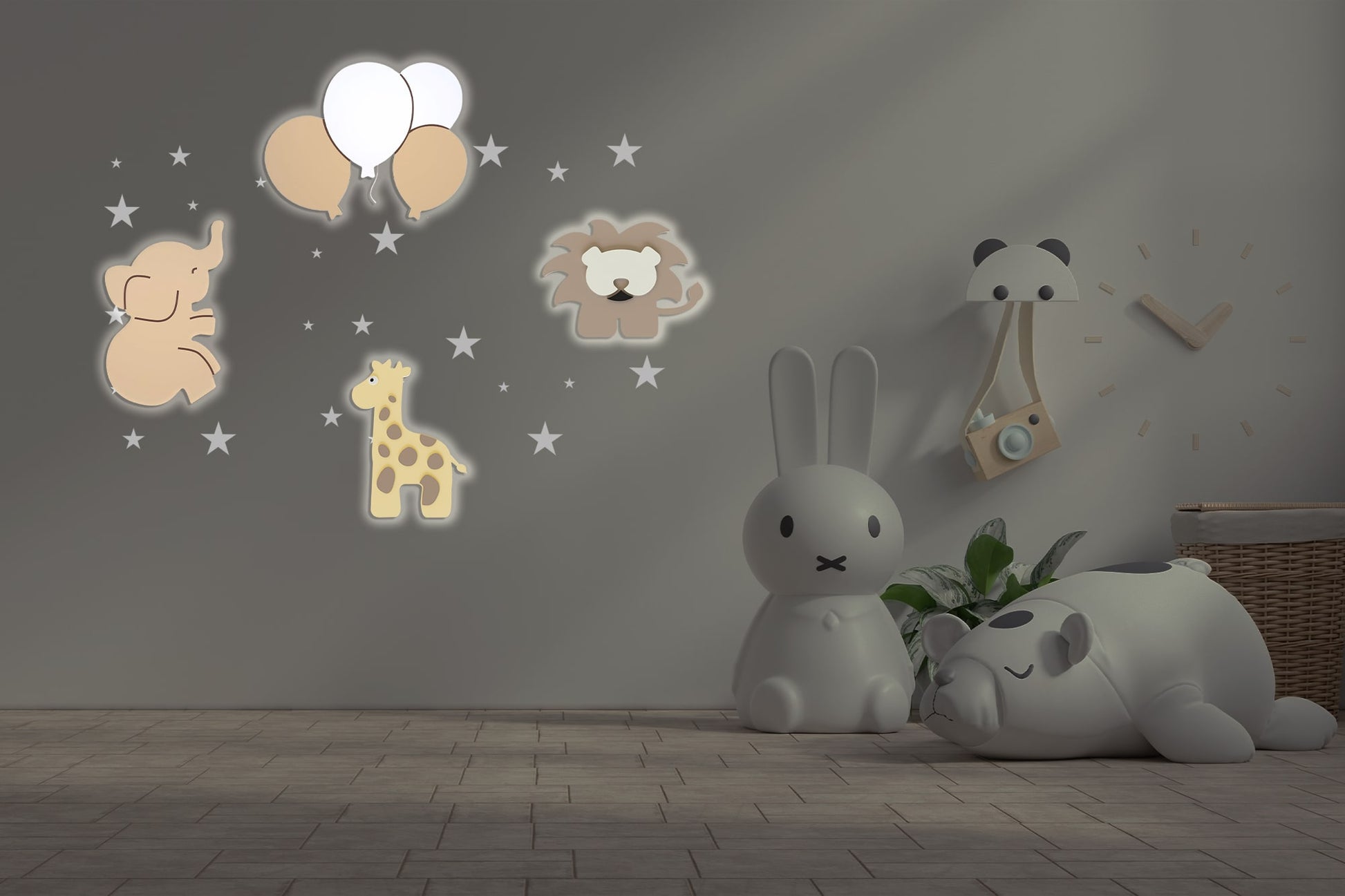 Composition 4 veilleuses murales enfant Safari Trio