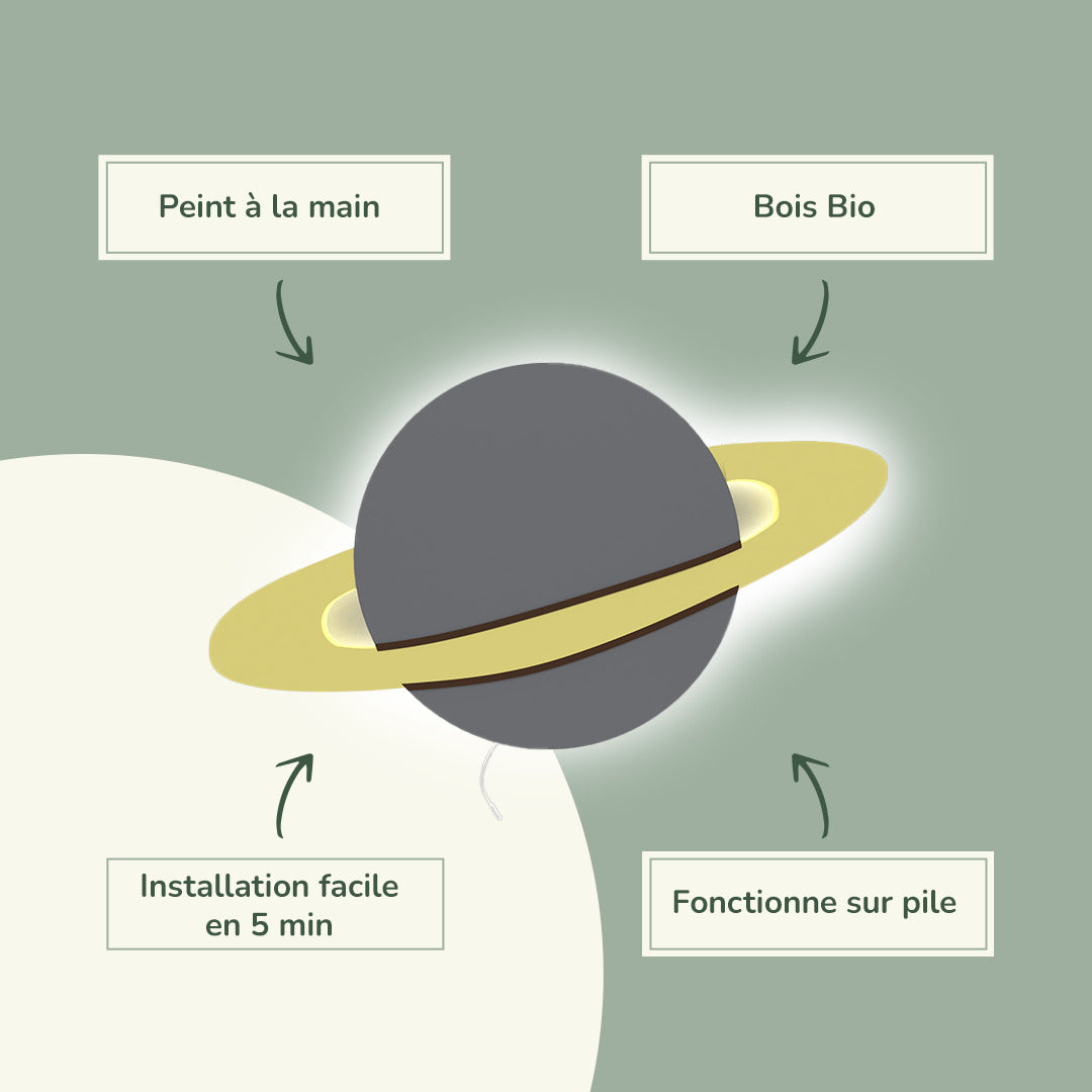 Conçue en bois naturel certifié et équipée d’un système LED basse consommation, elle diffuse une lumière douce qui rassure sans perturber le sommeil. Son installation facile et son style intemporel s’adaptent à tous les univers, ajoutant une touche de poésie et d’élégance à la décoration.